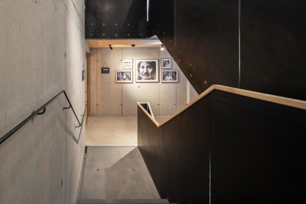 Das Gebäude gliedert sich heute in drei Ebenen. Im Erdgeschoss eröffnet sich mit dem Farmers Club ein wandelbarer Raum – Galerie, Festsaal, Bar und Küche in einem. Materialien wie Ziegel, Lehm, unbehandeltes Holz und verglaste Toröffnungen formen eine Atmosphäre zwischen Archaik und Eleganz. Das ursprüngliche Stalltor gibt nun den Blick auf die Schafweide frei, flankiert von Walnussbäumen und den Konturen der Voralpen.