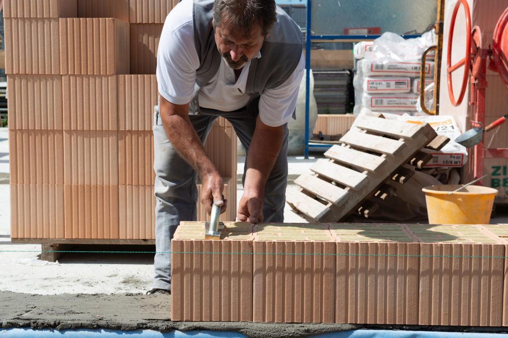 Monolithisches Ziegelmauerwerk mit integrierten Dämmpads aus Steinwolle bilden die Gebäudehülle.